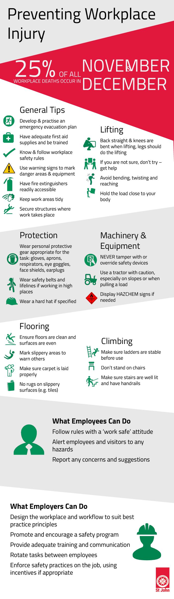 This is a tragic but avoidable reality which is everyone’s responsibility to work towards improving. Many organisations are continually implementing ways to make their workplace safer, however accidents still happen. While First Aid Training and up to date equipment greatly help improve survival in the event of an incident, the goal should also be to reduce the number of incidents from occurring. As the old saying goes, prevention is better than a cure!